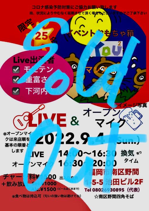 9月4日に予定しているマンスリーライブは定員となりました❗️