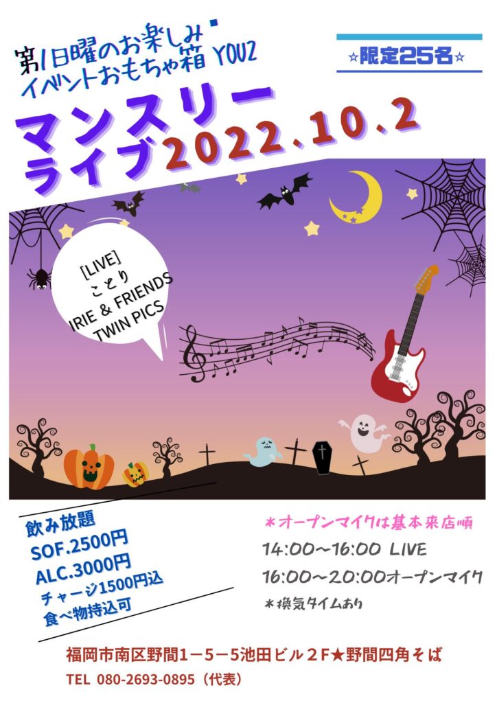 【ご案内】2022年10月マンスリーライブ 2022年9月19日 最終更新日時 : 2022年9月19日 youyou 友&遊恒例、第一日曜日のマンスリーライブのご案内 ご予約はお早めに... ライブの後は楽しいオープンマイクですよ Follow me! FacebooktwitterHatenaPocketCopy