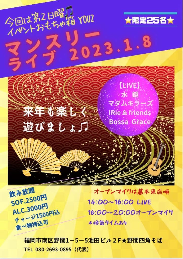 さー皆様、鬼が笑う来年のお話ですが、2023年第1回のマンスリーライブのご案内です![]()