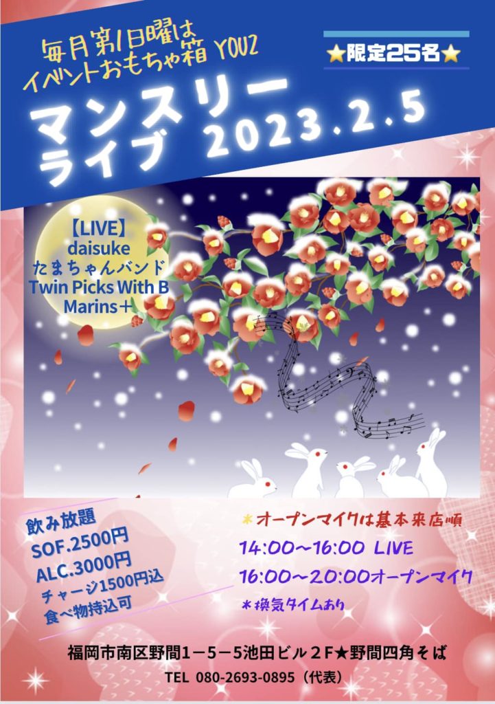YOU2(ユーユー)マンスリーライブのお知らせです