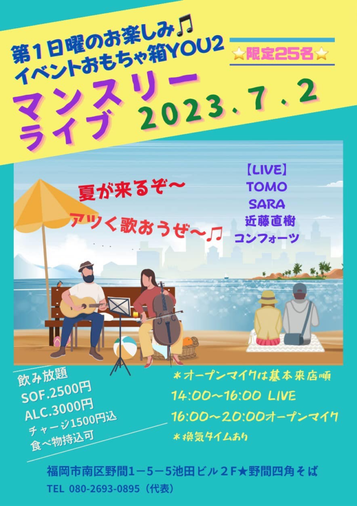 7月も第1日曜は、マンスリーライブやっちゃいます♫
